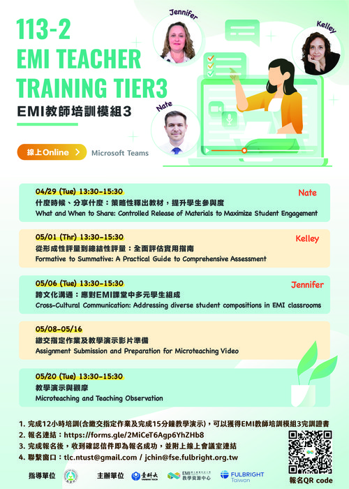 跨文化溝通:應對EMI課堂中多元學生組成 - 05/20 (週二 Tue, 13:30-15:30, 2hrs)